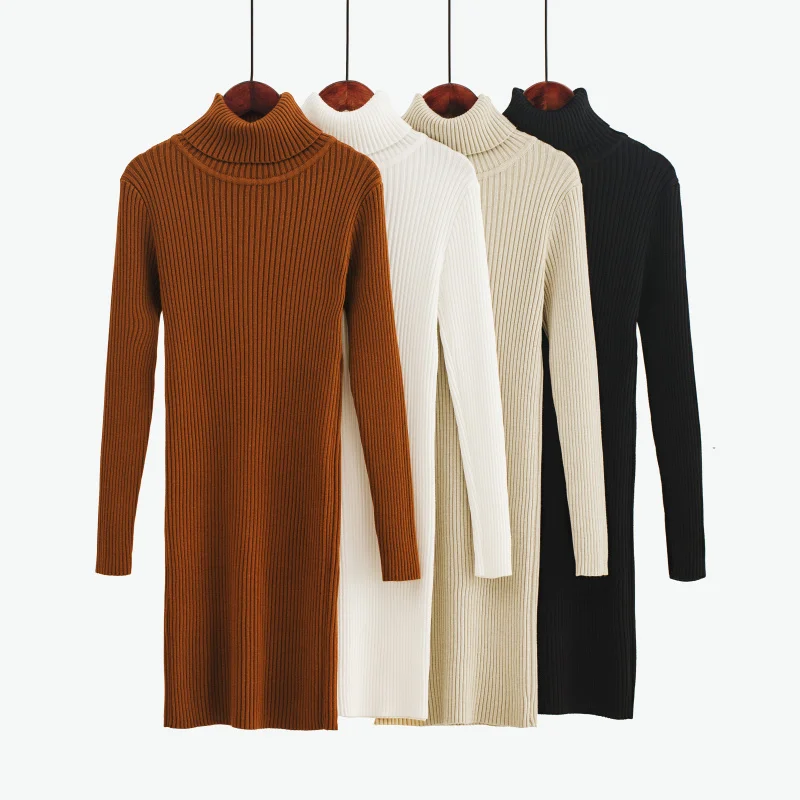 New Product Korean Sweater Dress Fashion Women Knitted Dresses Elegant Women Turtleneck Sweaters Dress Knitting